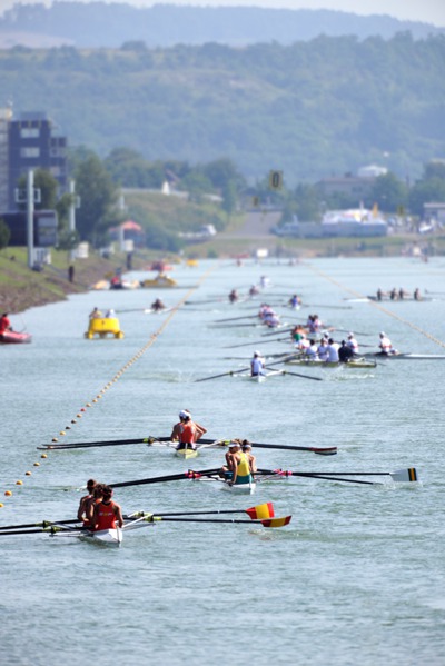 Dnes se na kanále v Račicích představilo ve 40 rozjížďkách 213 lodí. Překvapivě velká byla návštěva diváků, mezi nimiž byla řada rodičů a přátel mladých závodníků zejména z Německa a dalších „veslařských zemí“. A samozřejmě na tribunách byli i veslařští fandové od nás. Přispělo k tomu i slunečné počasí.